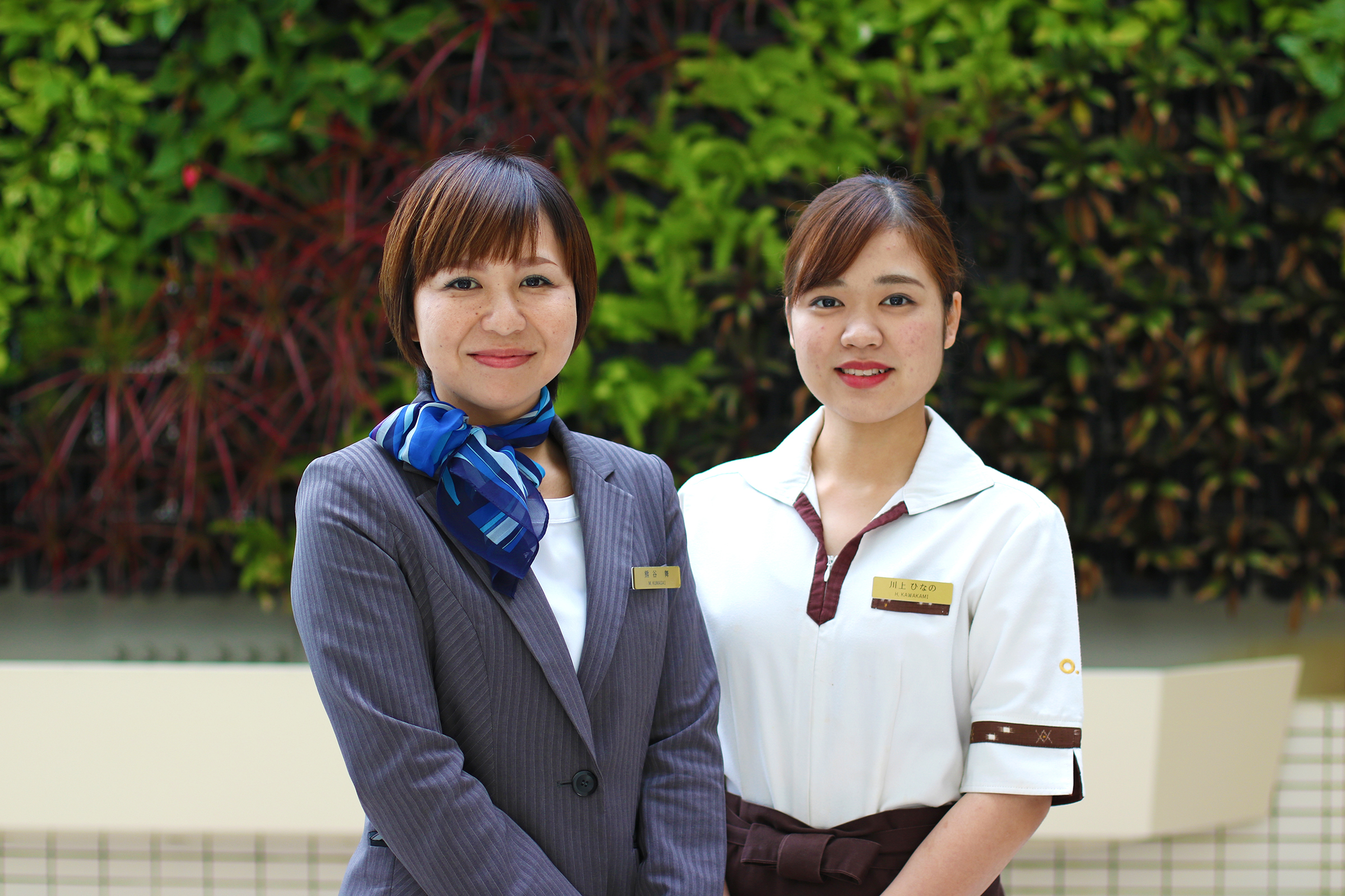 ①ホテルフロントでは、チェックイン・チェックアウトや滞在中のお客様の対応。 ロビーサービスでは、お客様のお出迎え、観光案内などの接客サービス全般